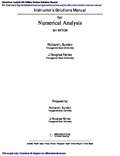 Read Burden Faires Numerical Analysis 9th Edition Student Solutions PDF